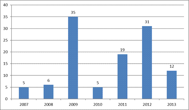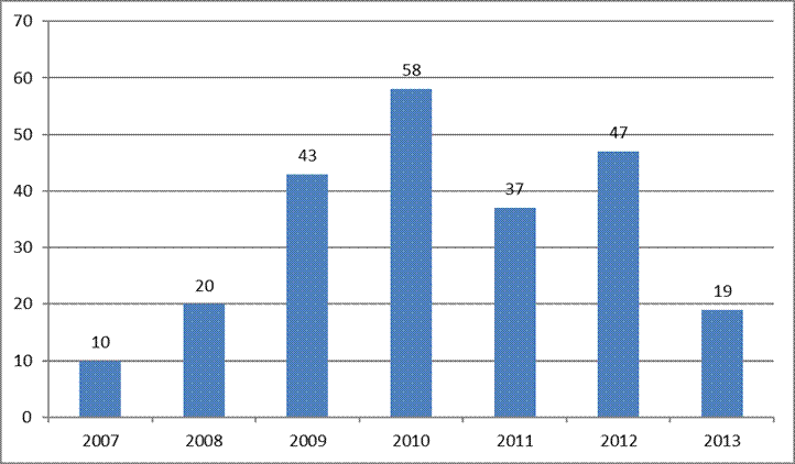 الإدانات في قضايا الاتجار بالبشر (2007 – 2012 )